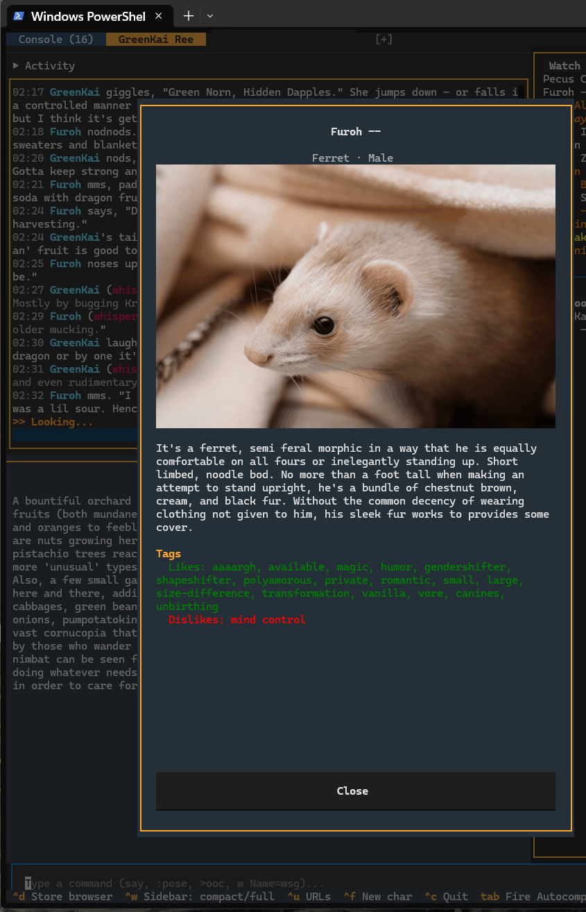 Please feel free to comment here if you try it, or find Kredden or Zari on Wolfery. I’m looking for 2-5 testers who want to use this as a daily driver solution so they can help me make it feature complete.